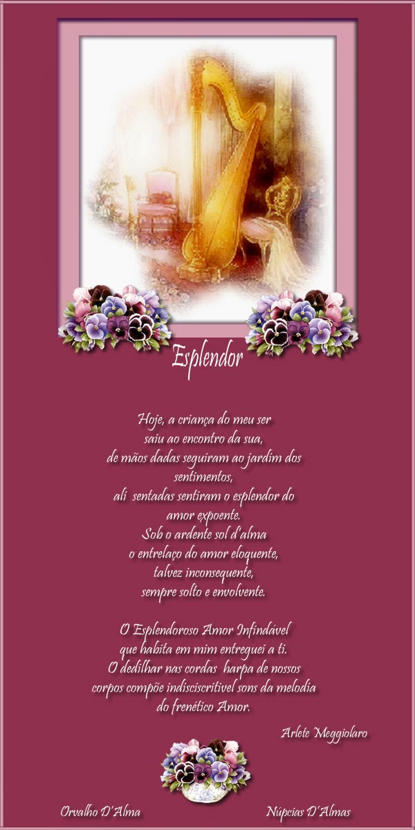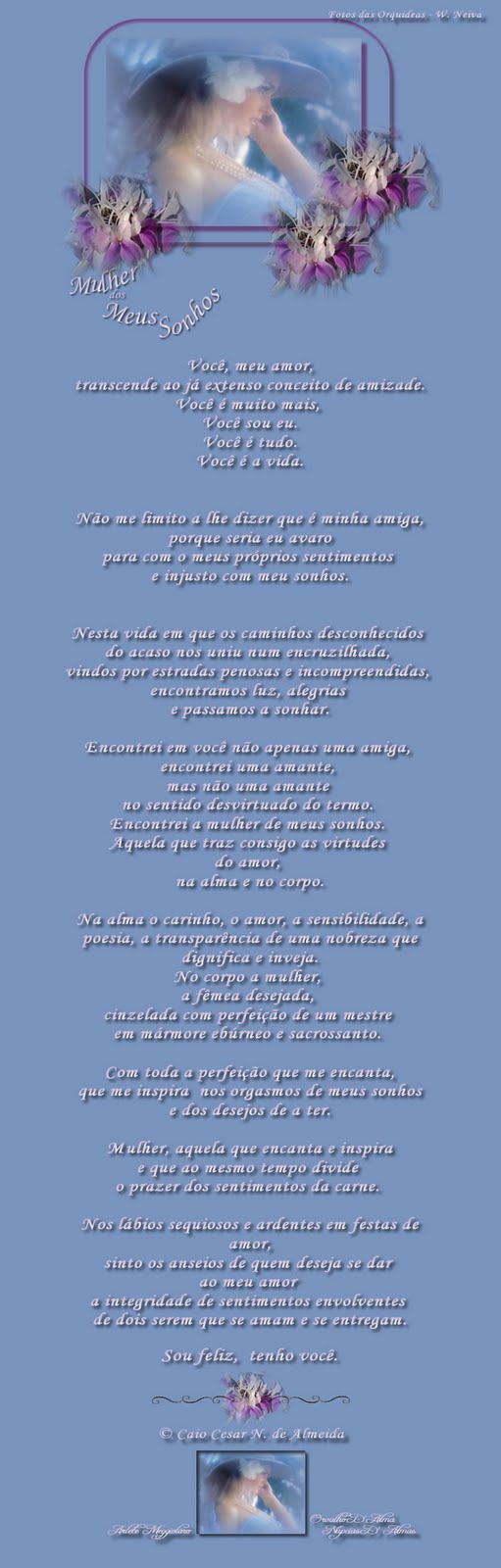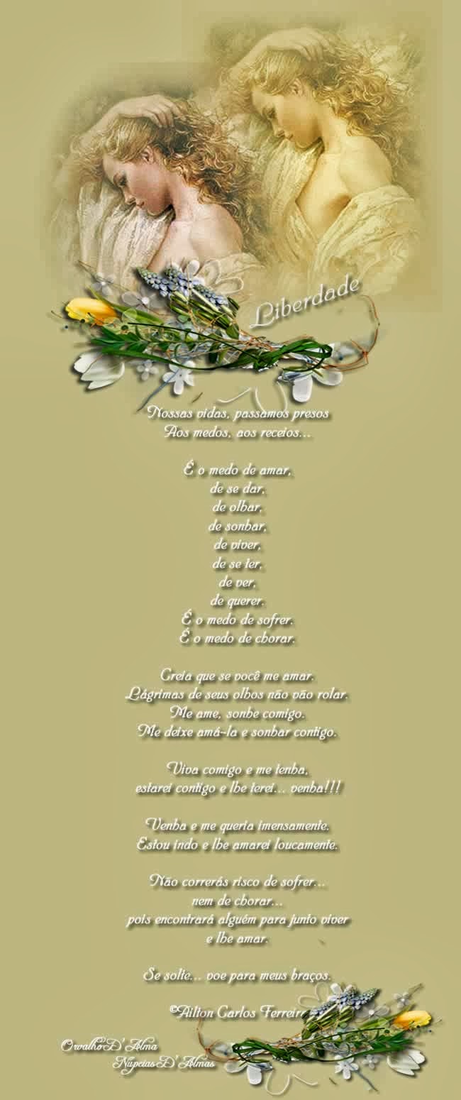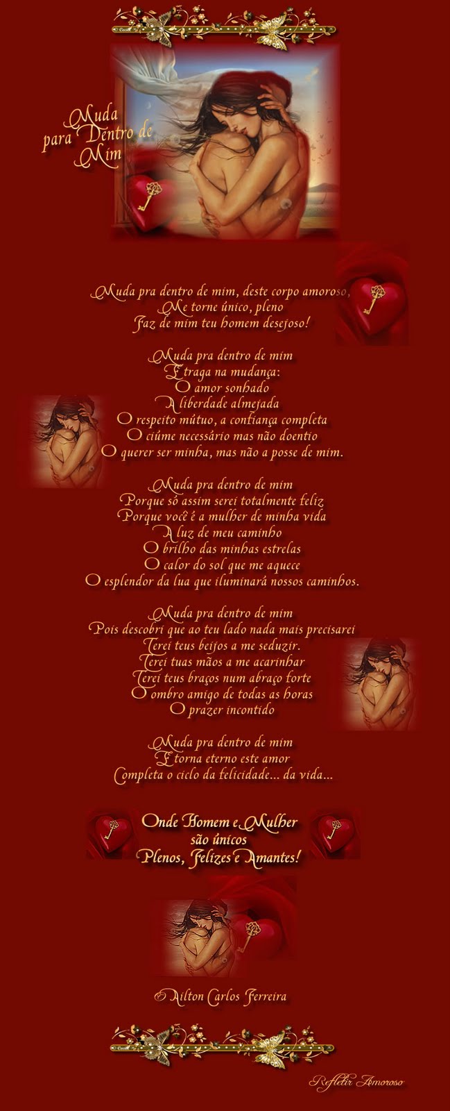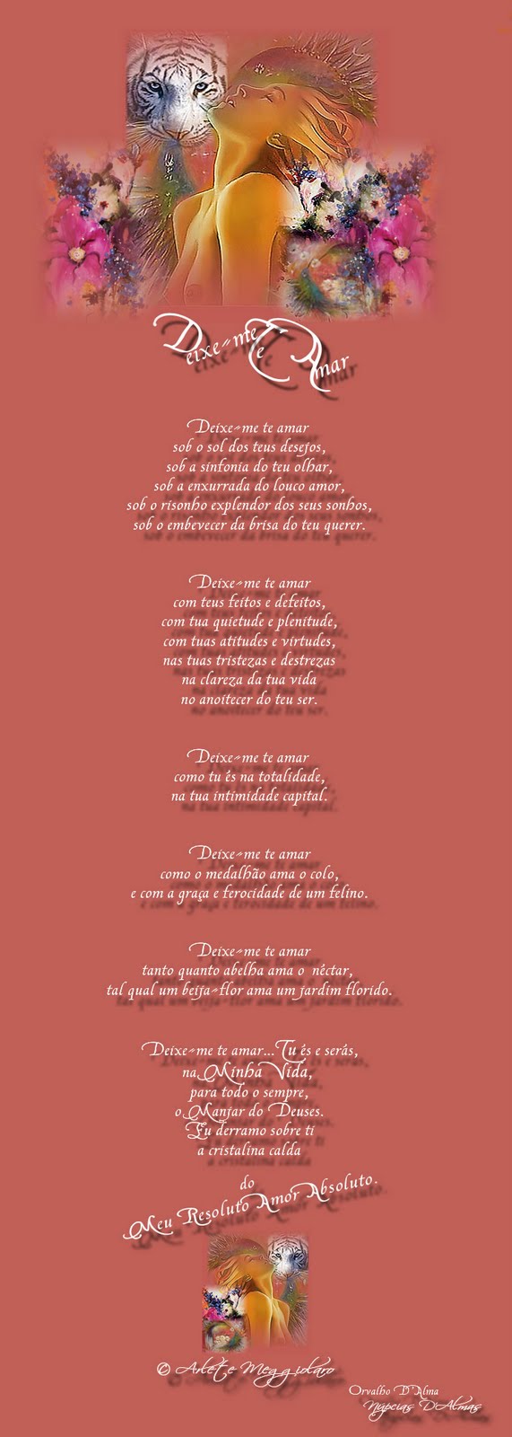 Neste espaço amoroso os poemas, também, podereve atualkizarerão ser enviados ou através de e-mail, ou Orkut, ou facebook, etc., clicando no lado direito do mouse, a seguir “Copiar endereço da imagem”, colar o local preferido, desta forma o poema será anexado aberto.