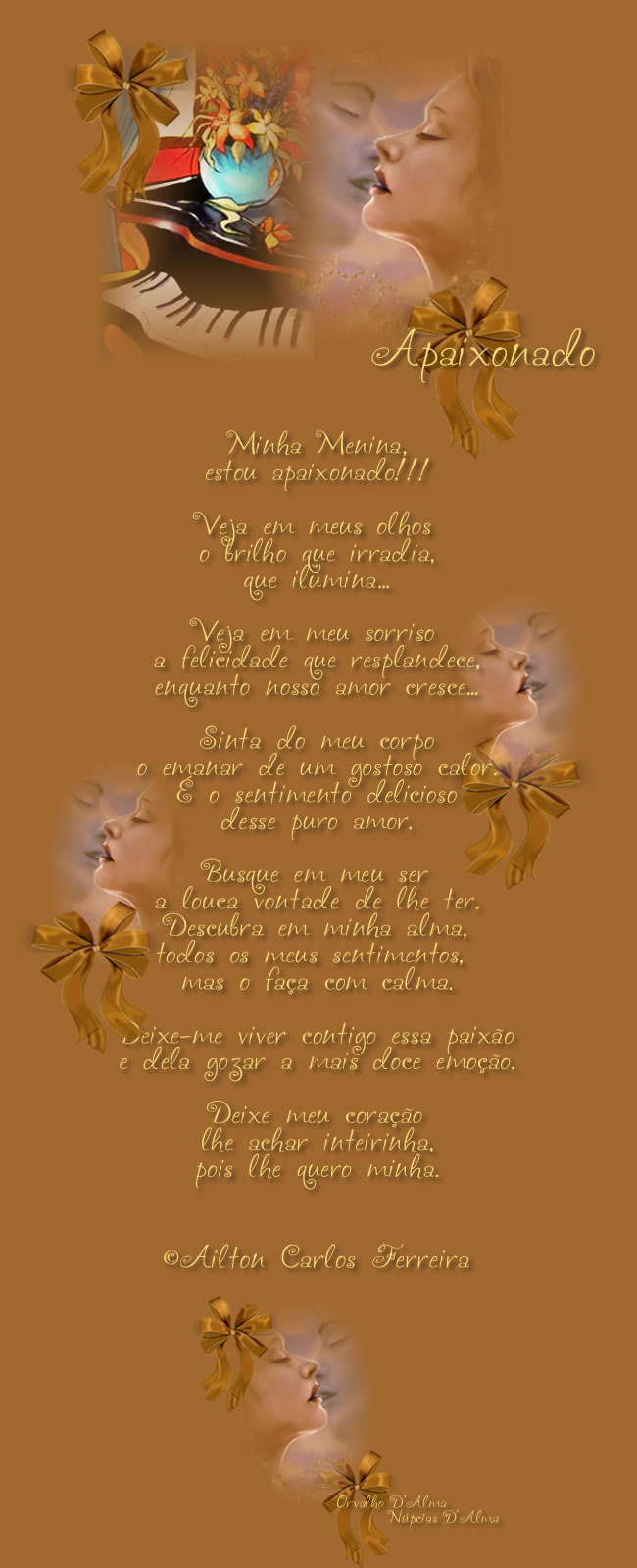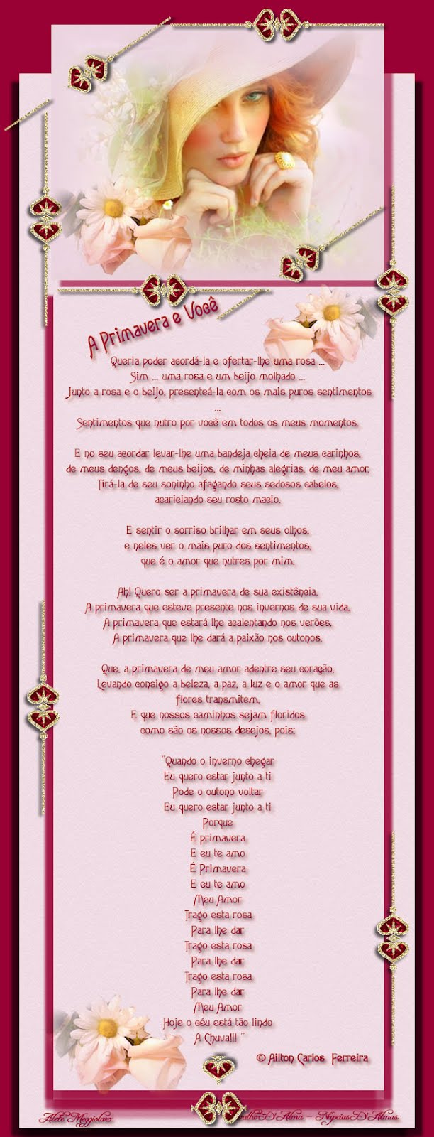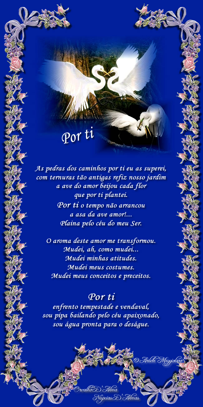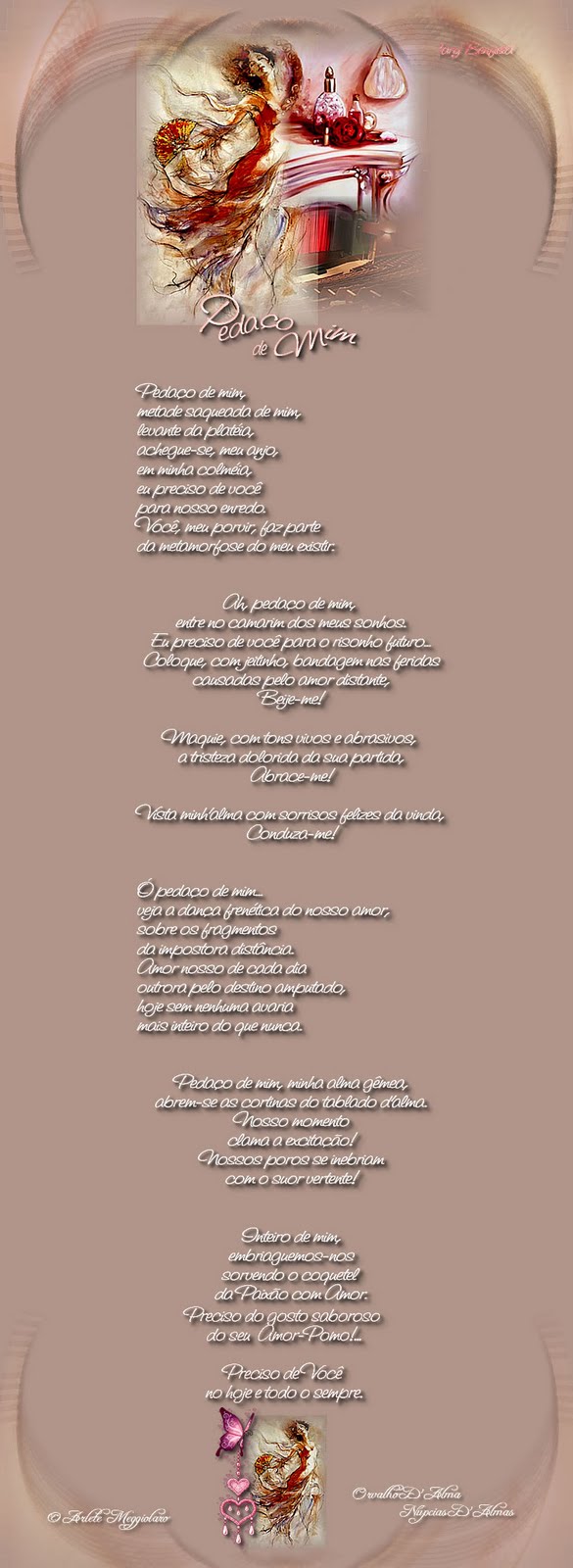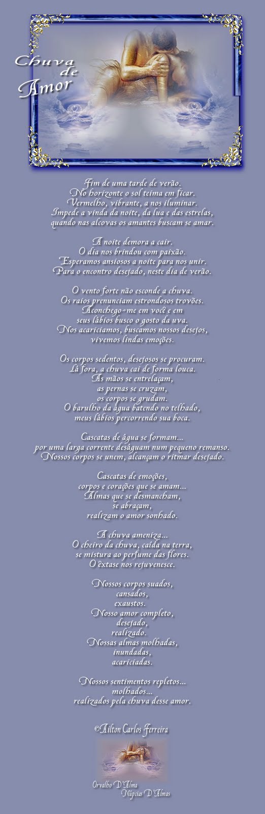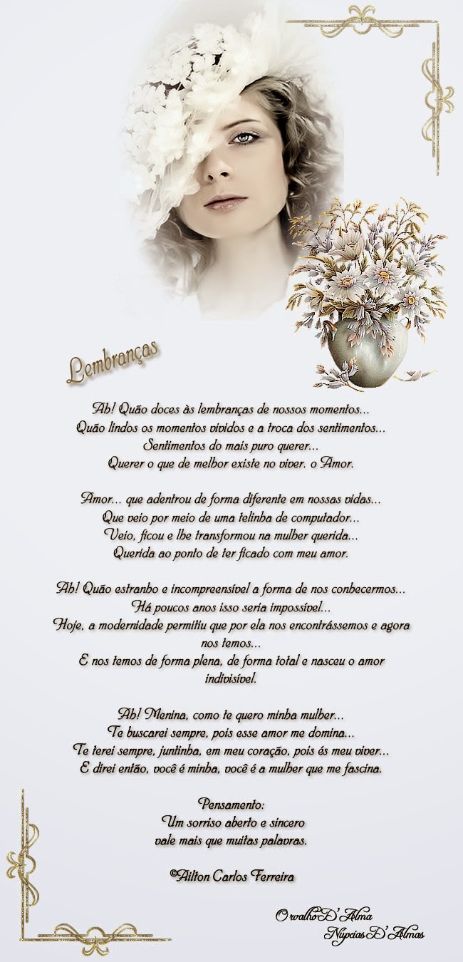 Neste espaço amoroso os poemas, também, podereve atualkizarerão ser enviados ou através de e-mail, ou Orkut, ou facebook, etc., clicando no lado direito do mouse, a seguir “Copiar endereço da imagem”, colar o local preferido, desta forma o poema será anexado aberto.
