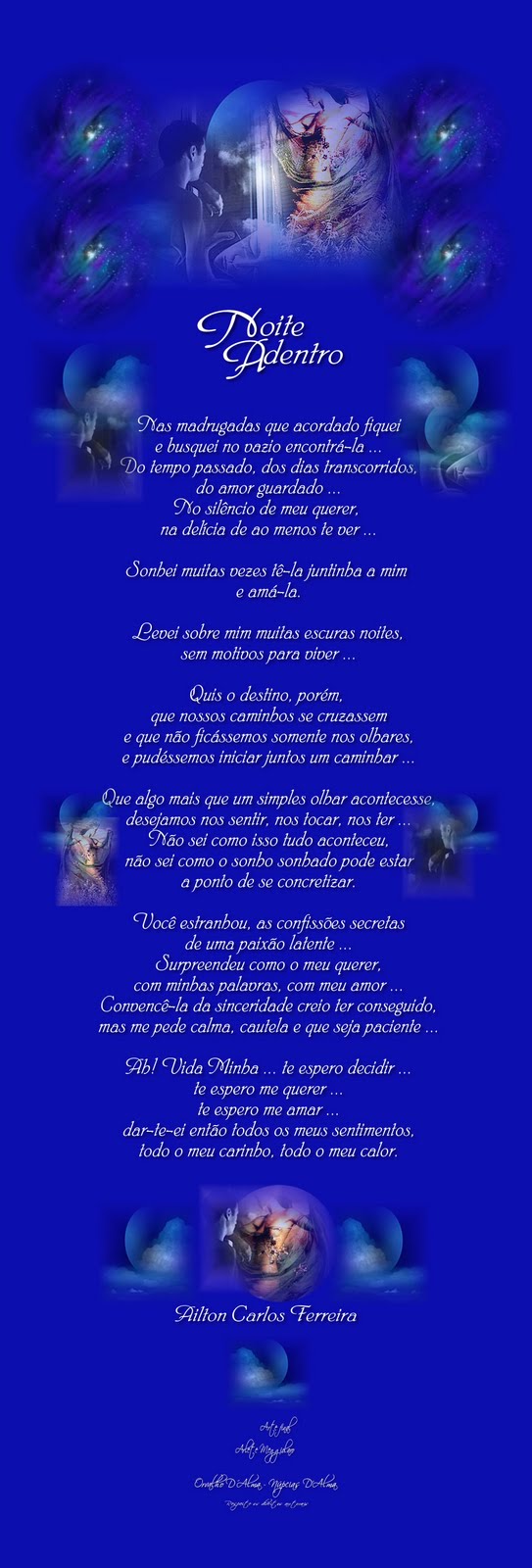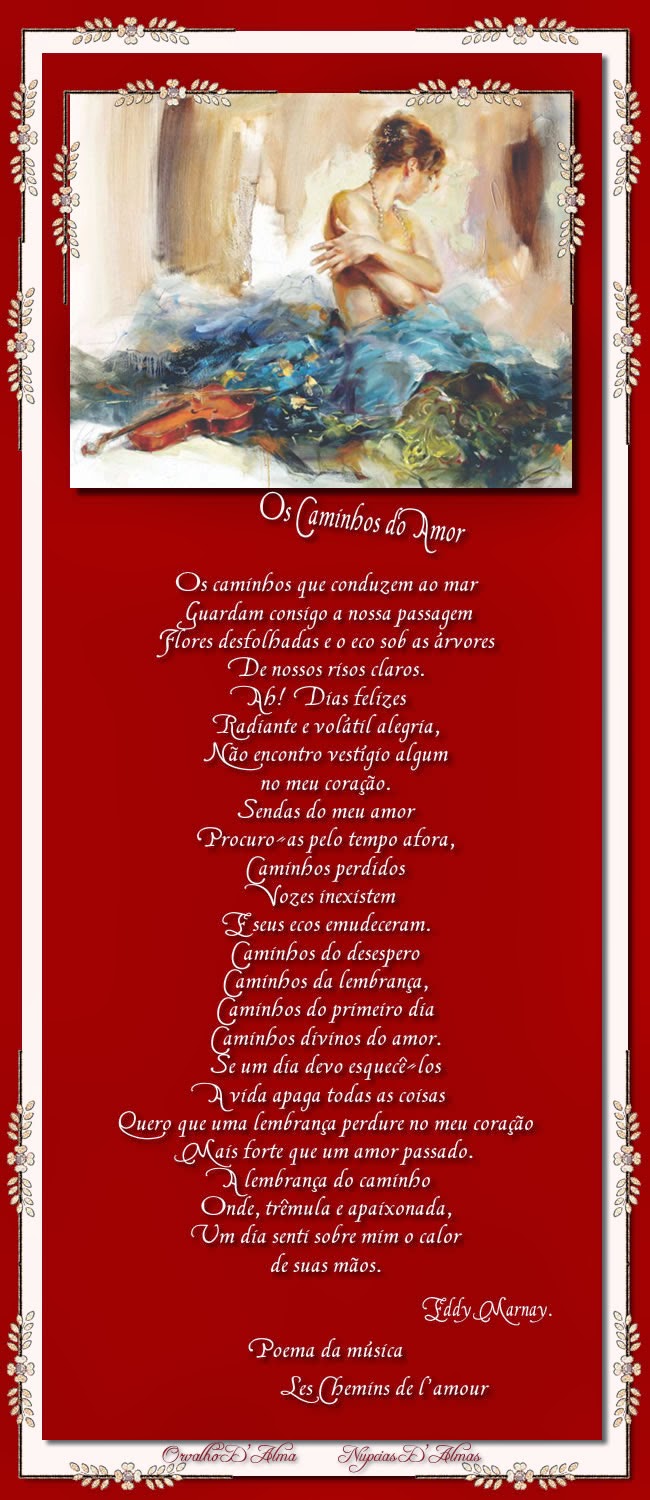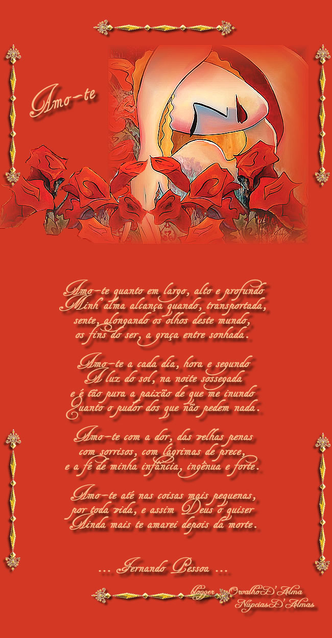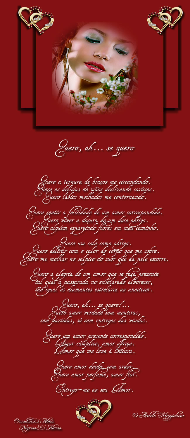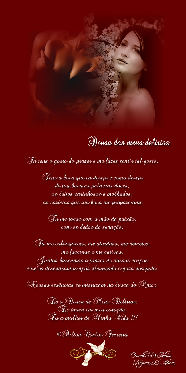 Neste espaço amoroso os poemas, também, podereve atualkizarerão ser enviados ou através de e-mail, ou Orkut, ou facebook, etc., clicando no lado direito do mouse, a seguir “Copiar endereço da imagem”, colar o local preferido, desta forma o poema será anexado aberto.