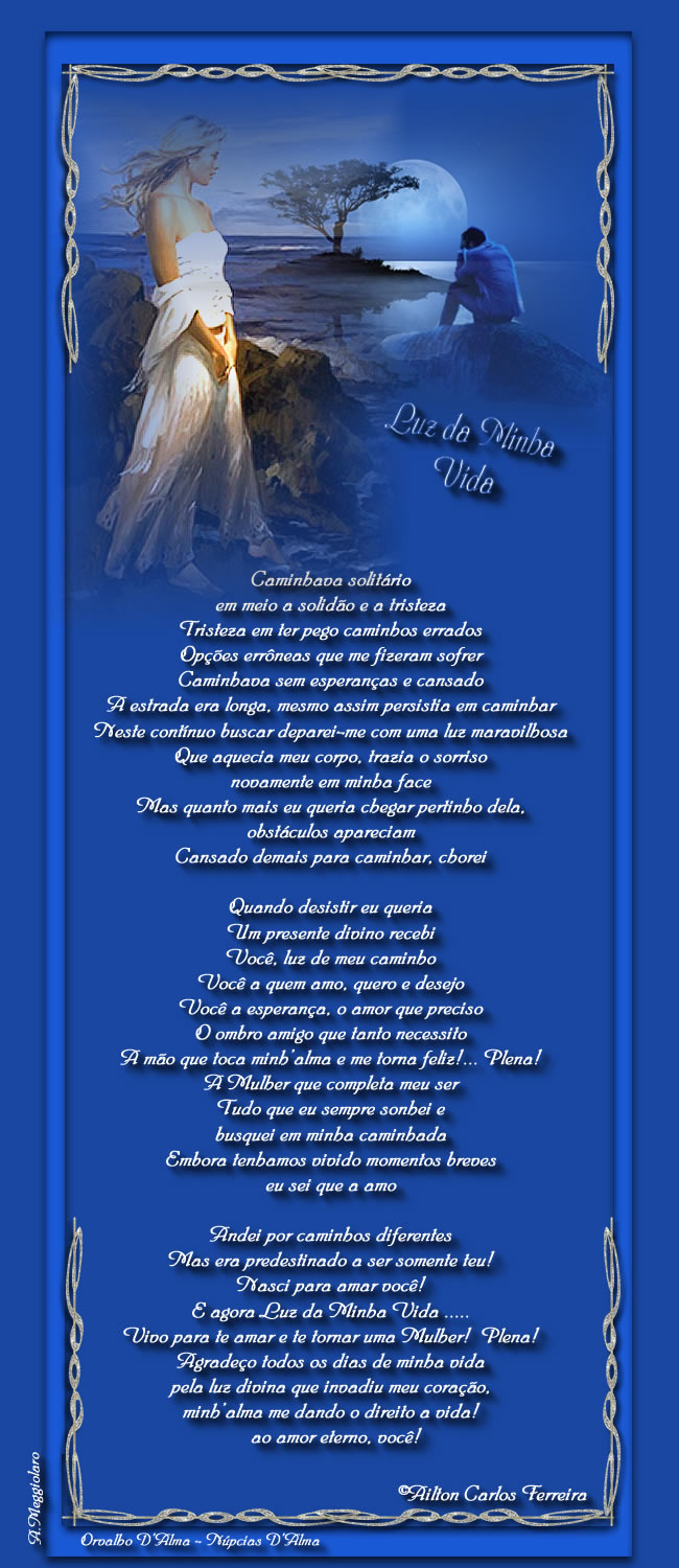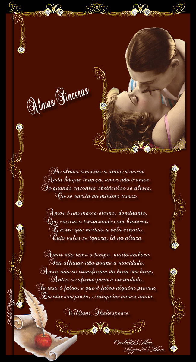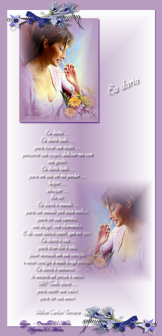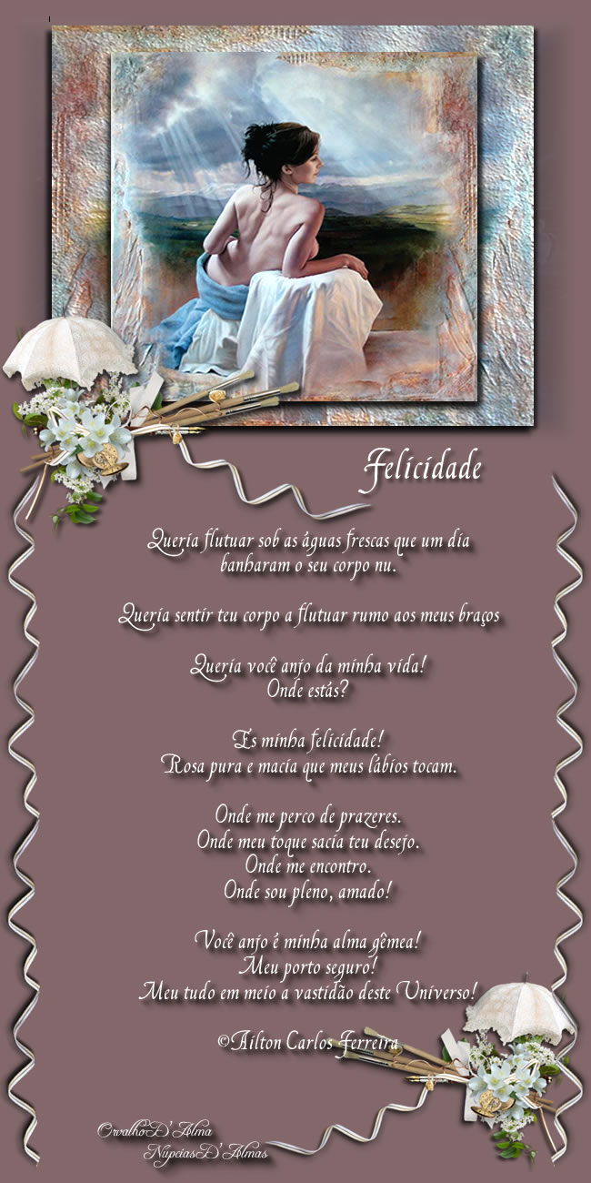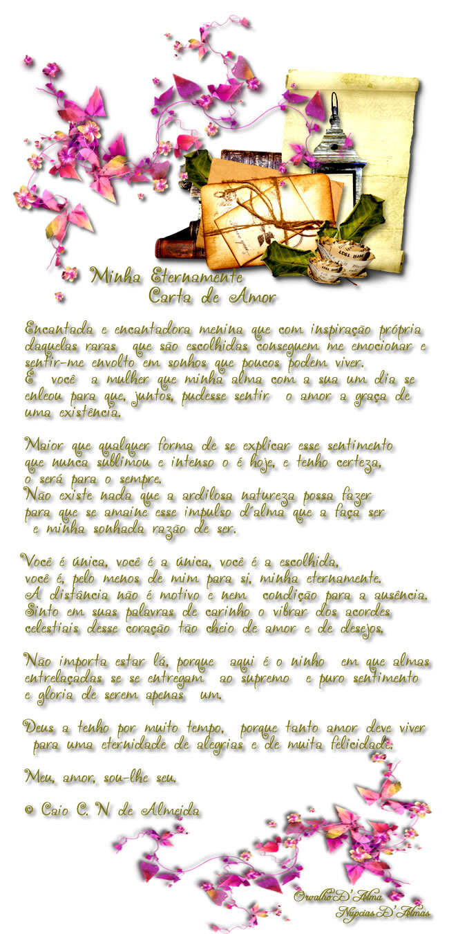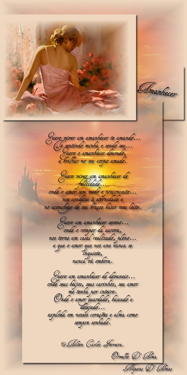 Neste espaço amoroso os poemas, também, podereve atualkizarerão ser enviados ou através de e-mail, ou Orkut, ou facebook, etc., clicando no lado direito do mouse, a seguir “Copiar endereço da imagem”, colar o local preferido, desta forma o poema será anexado aberto.
